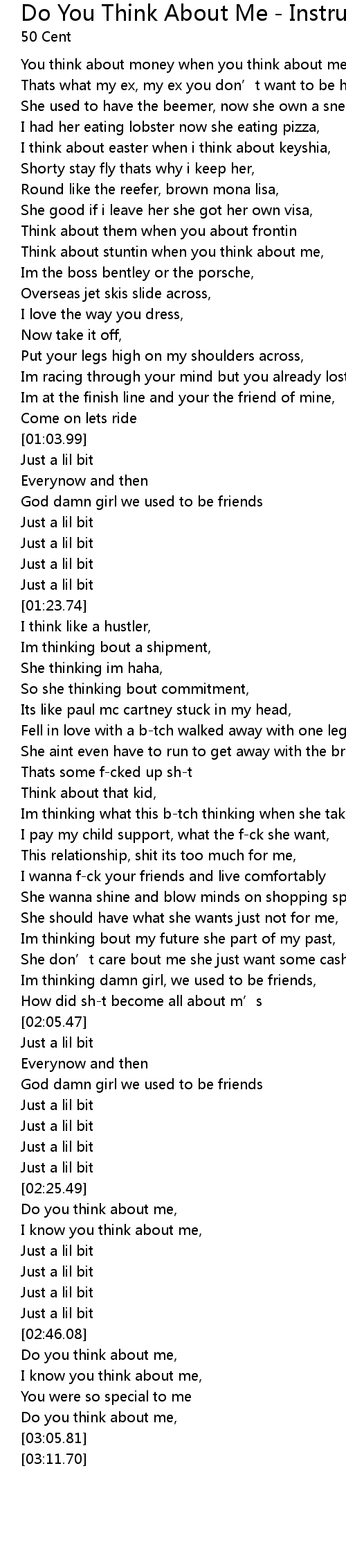 | [00:22.75] | You think about money when you think about me huh, |