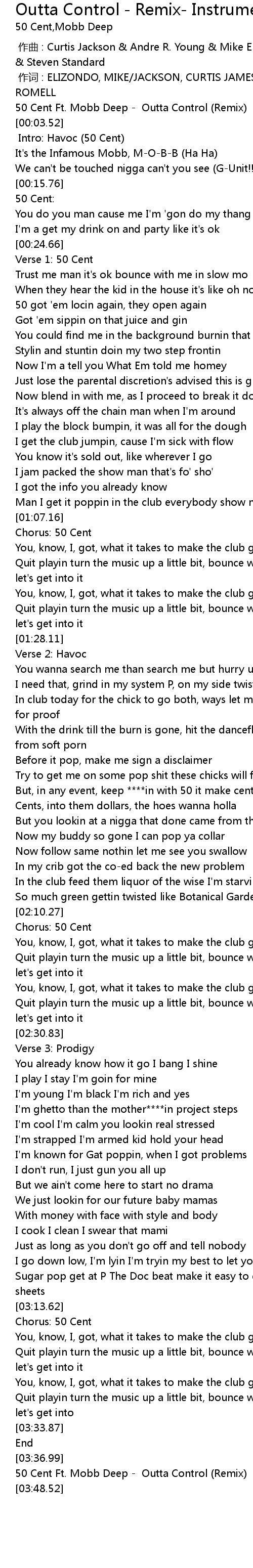 [00:00.52] 50 Cent Ft. Mobb Deep Outta Control Remix