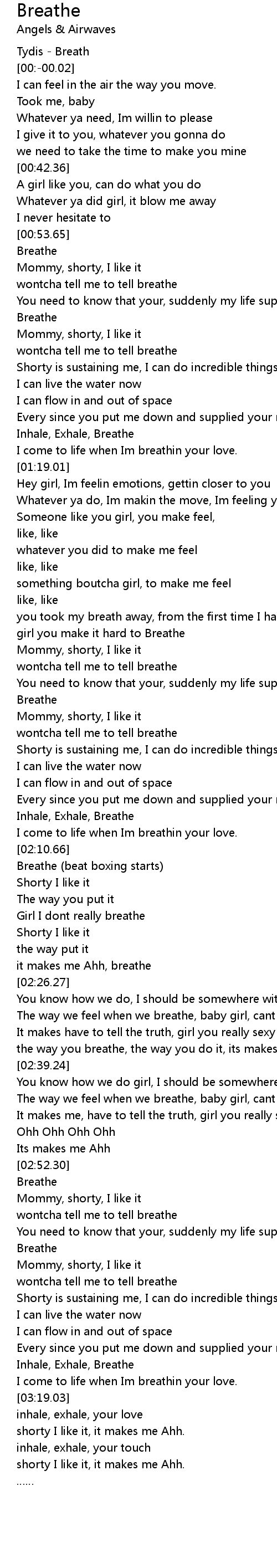 | [02:10.94] | Breathe (beat boxing starts) |