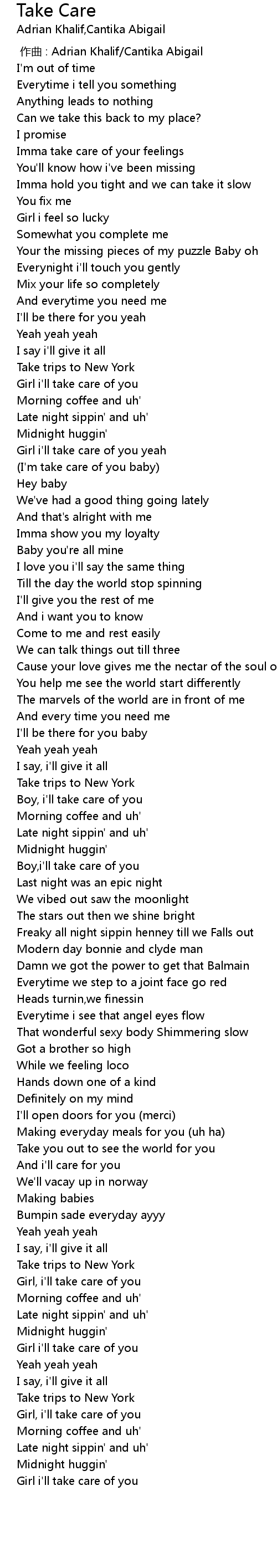 | Song | Take Care |