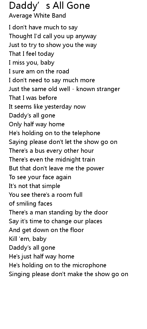 Daddy’s All Gone Daddy' s All Gone Lyrics