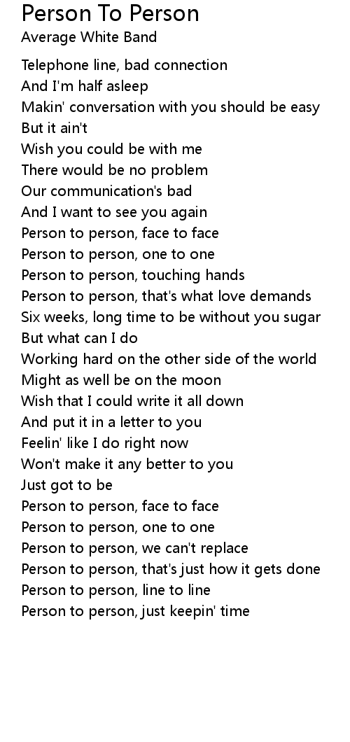 Person to person, line to line |