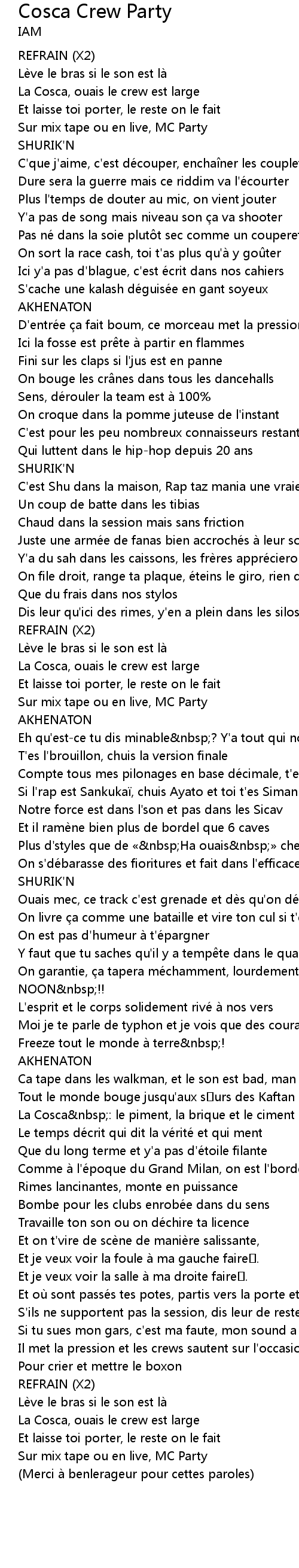 | Et ou sont passe s tes potes, partis vers la porte et bouder notre son | |