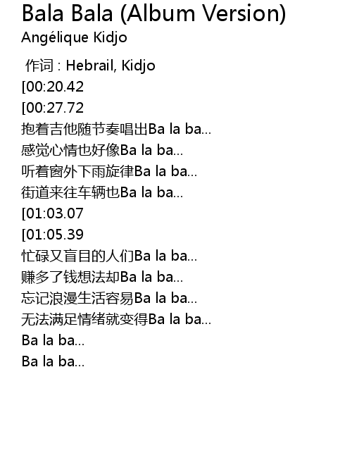 | [00:00.00] | 作词 : Hebrail, Kidjo |