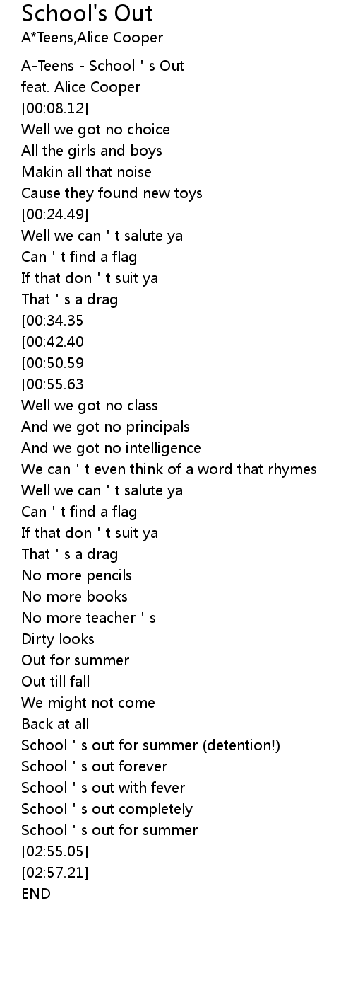 | [02:25.92] | School's out forever |