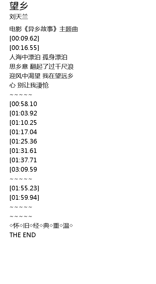 | [00:05.16] | 电影《异乡故事》主题曲 |