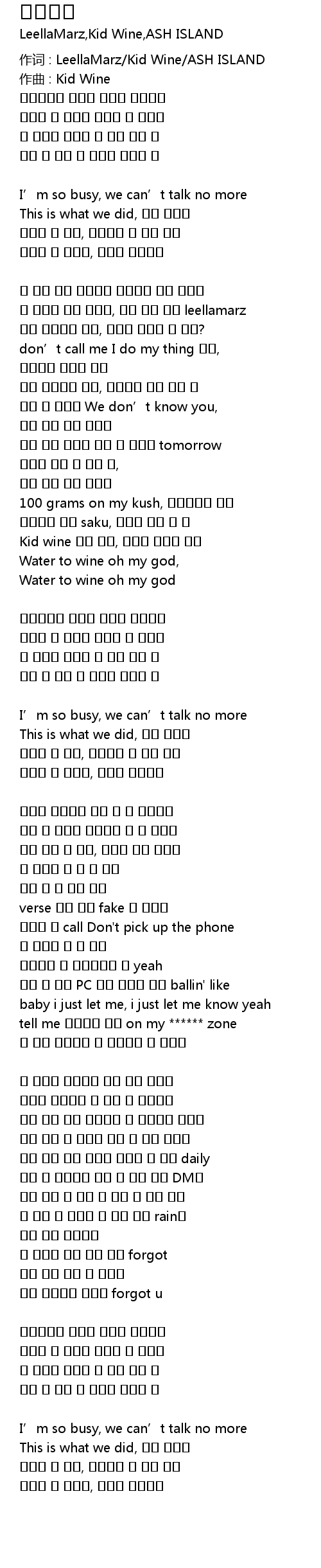 作词 : LeellaMarz/Kid Wine/ASH ISLAND |