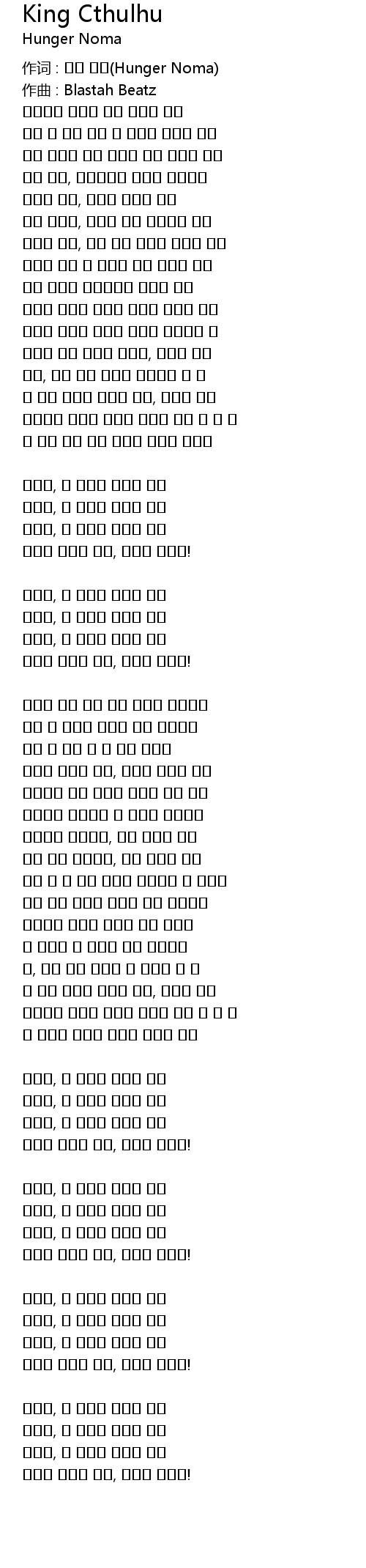 | 作词 : 헝거 노마(Hunger Noma) | |