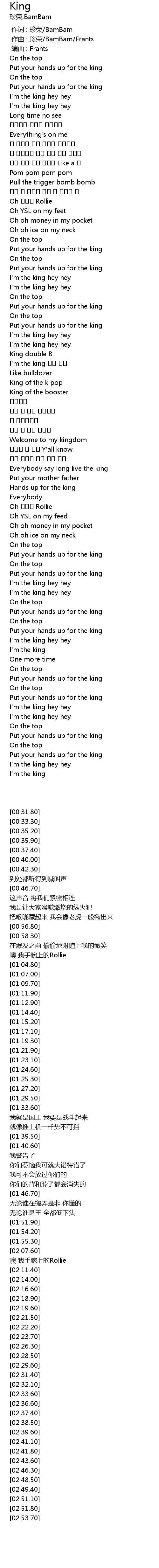 | [00:33.30] | Put your hands up for the king |