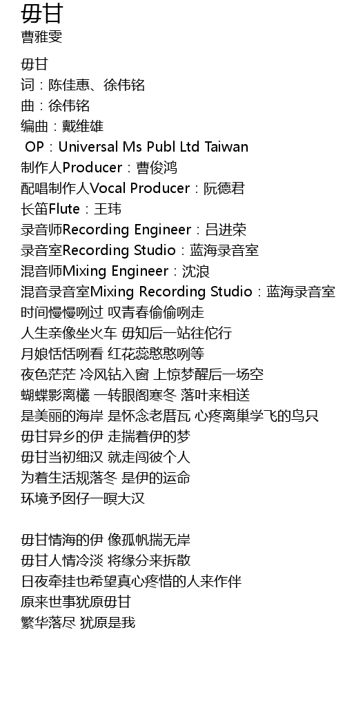 | lù yīn shī Recording Engineer: lǚ jìn róng | |