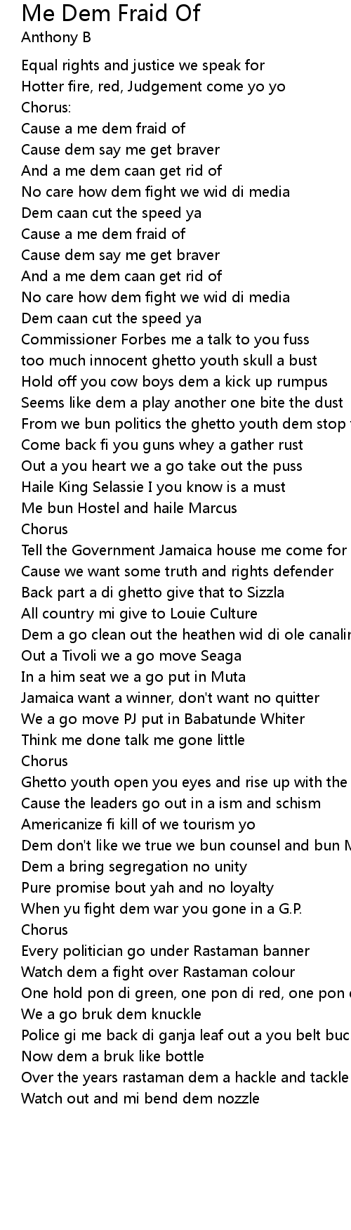 Cause a me dem fraid of |
