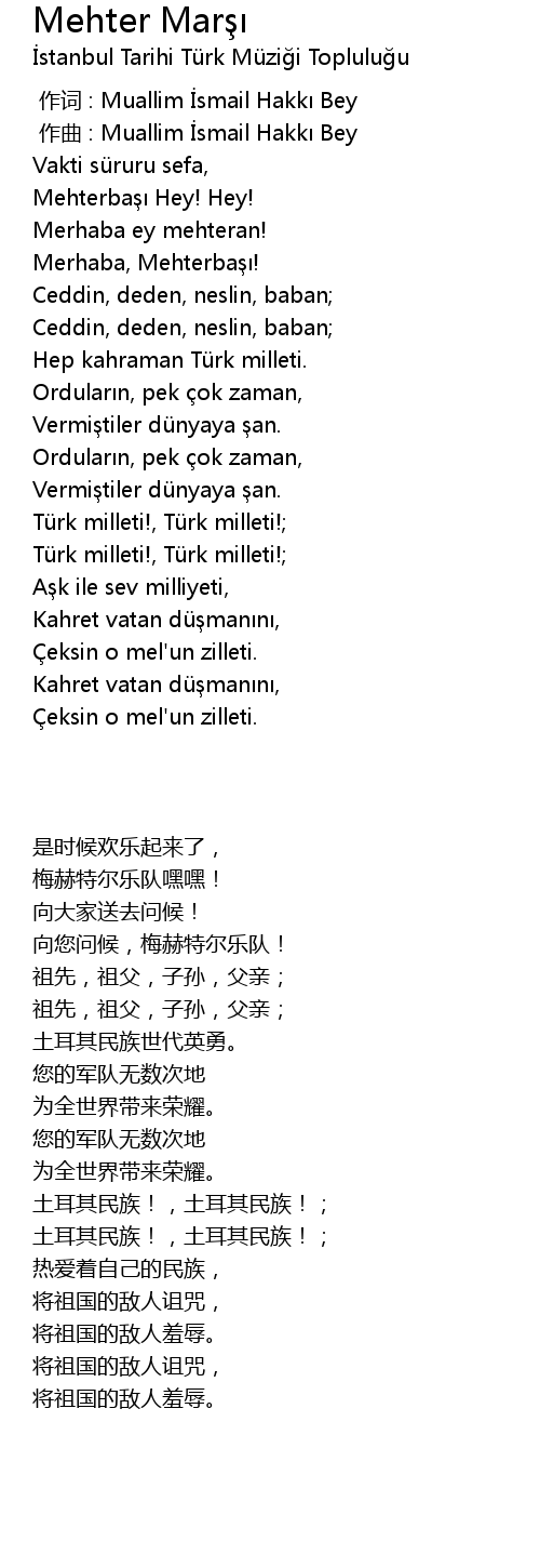 | [00:00.000] | 作词 : Muallim İsmail Hakkı Bey |