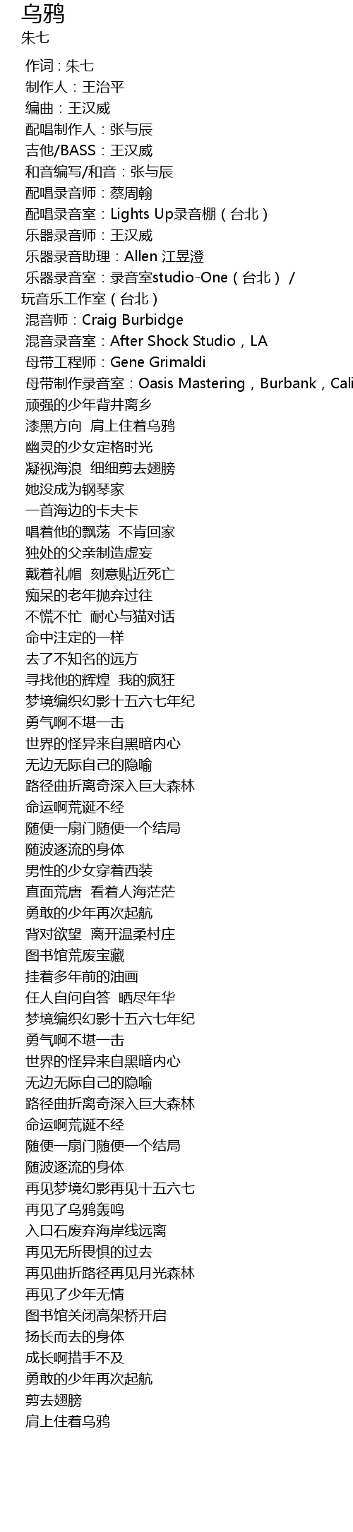 | [00:00.000] | 作词 : 朱七 |