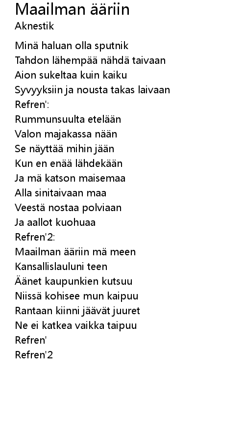 | Song | Maailman ääriin |