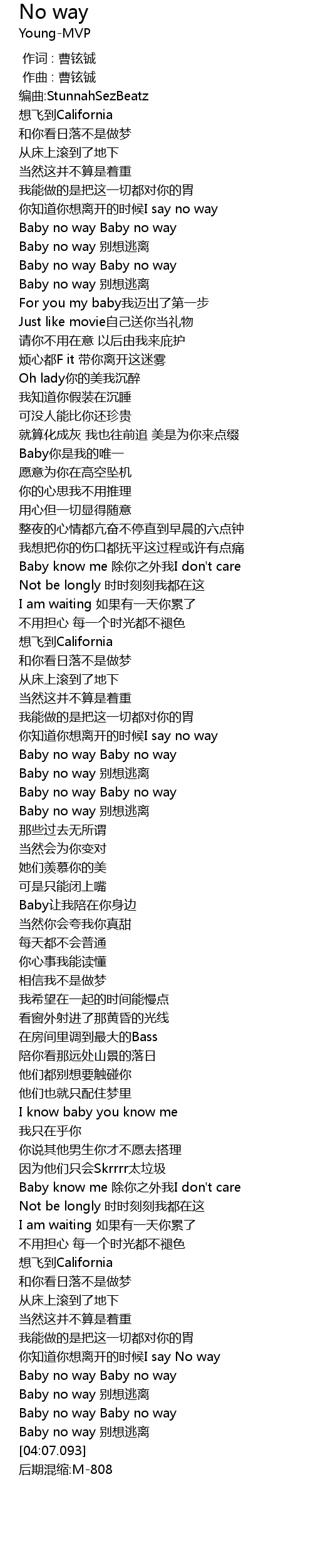 | [01:59.630] | 你知道你想离开的时候I say no way |
