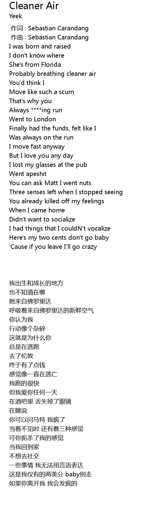 | Song | Cleaner Air |
