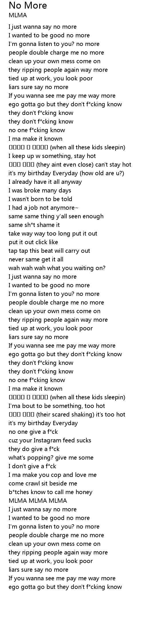 | [02:36.768] | I just wanna say no more |