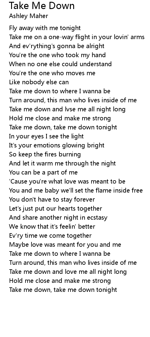 Take me down, take me down tonight |