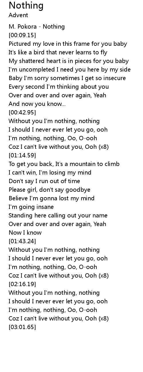 [02:29.61] Without you I'm nothing, nothing