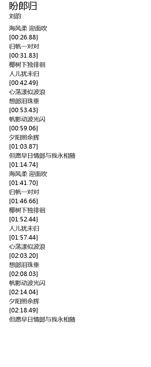 | [02:19.17] | 但愿早日情郎与我永相随 |