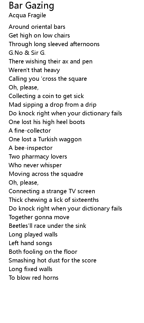 Bar Gazing Lyrics
