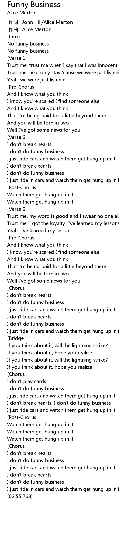 | [00:57.832] | Trust me, my word is good and I swear no one else's |