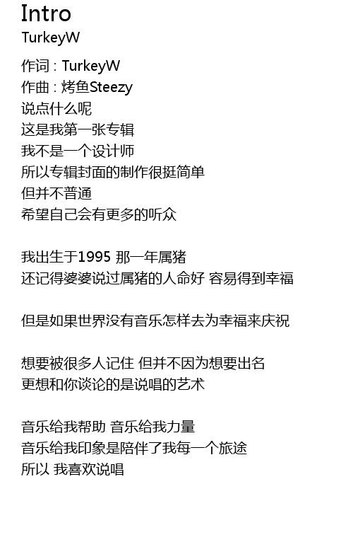 | 作词 : TurkeyW | |