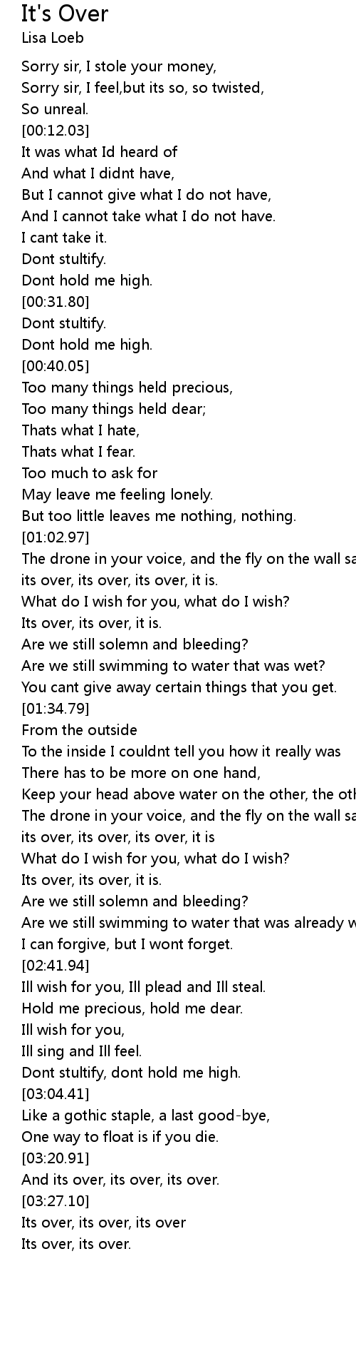 | [03:28.35] | Its over, its over, its over |