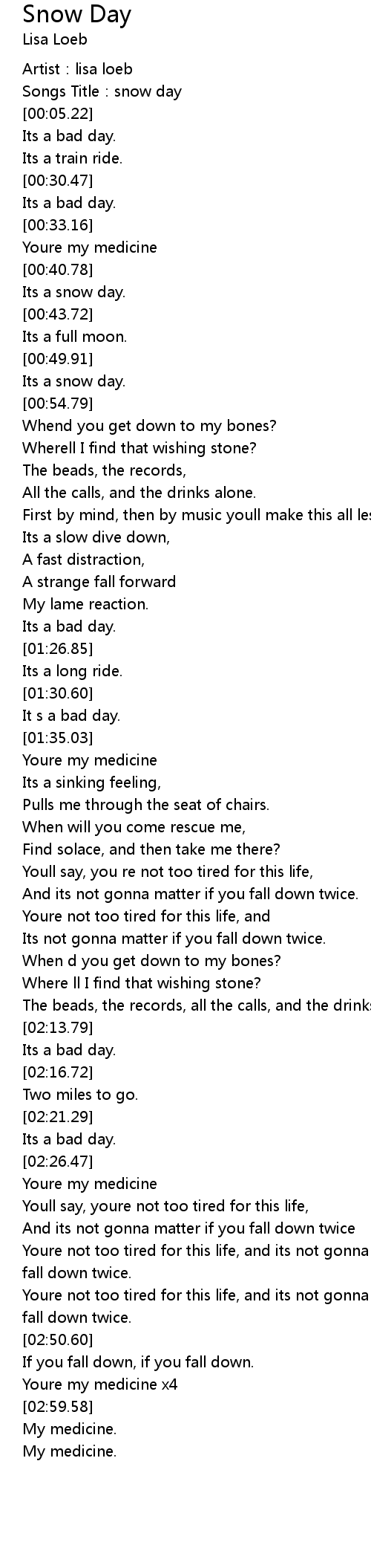 | [00:22.78] | Its a bad day. |