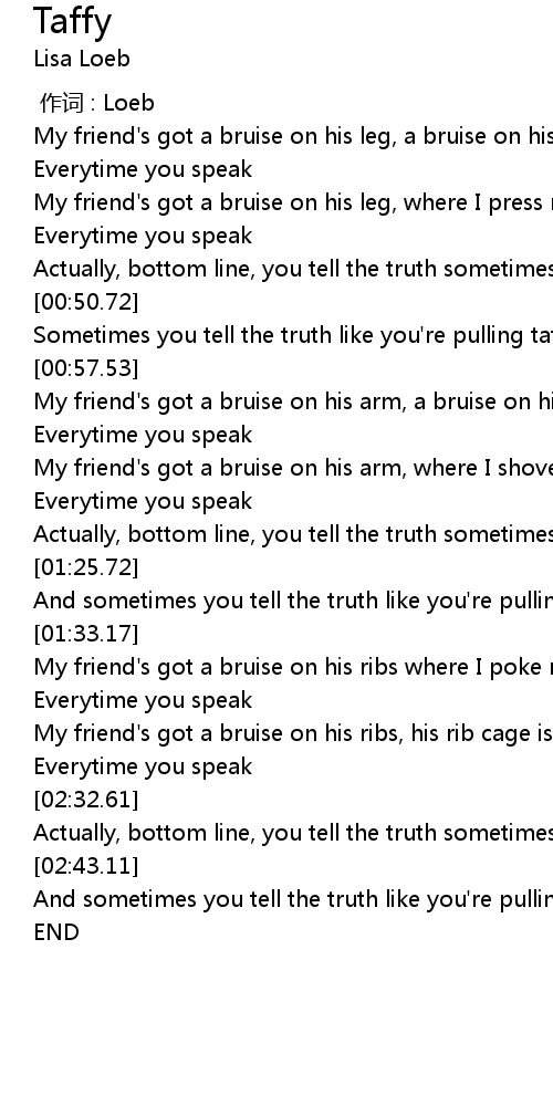 | [02:44.42] | And sometimes you tell the truth like you' re pulling taffy |