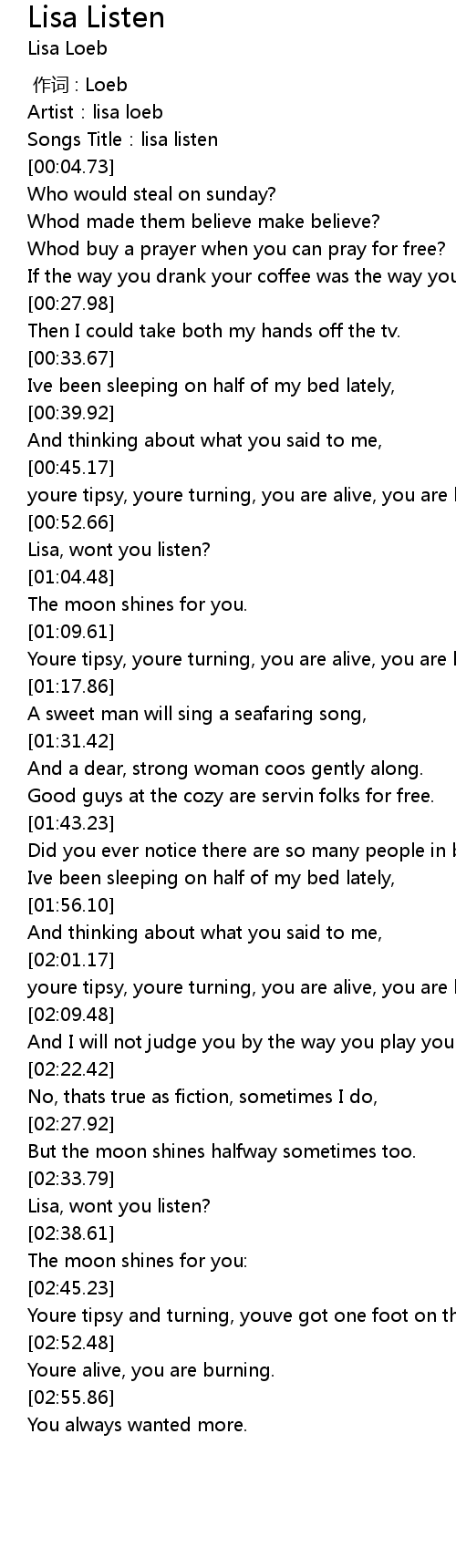 | [00:02.54] | Songs Title: lisa listen |