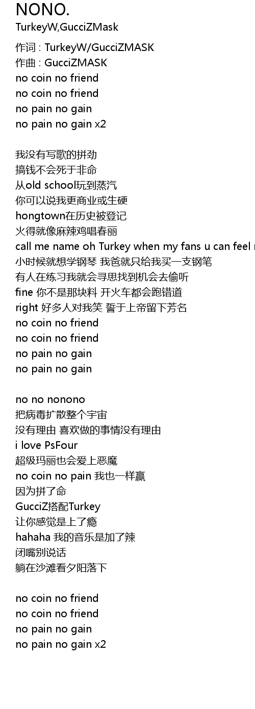 | 作词 : TurkeyW/GucciZMASK | |