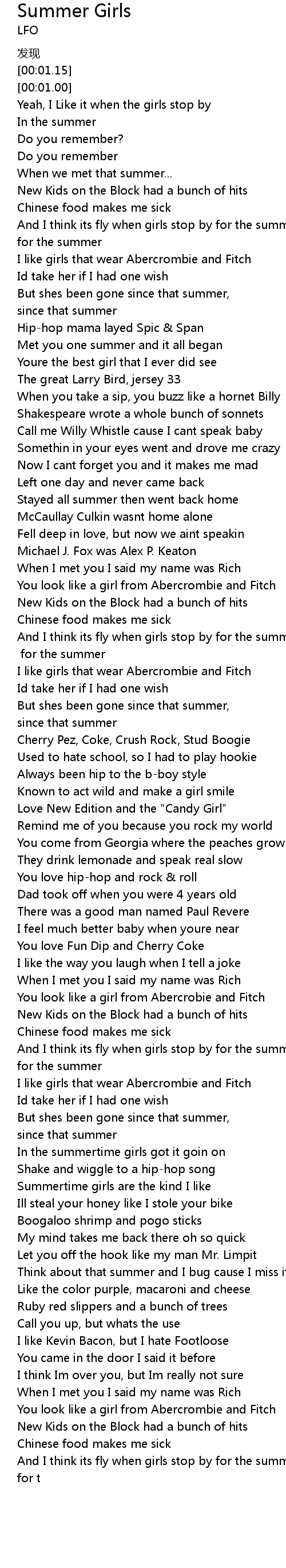 | [01:27.31] | I like girls that wear Abercrombie and Fitch |
