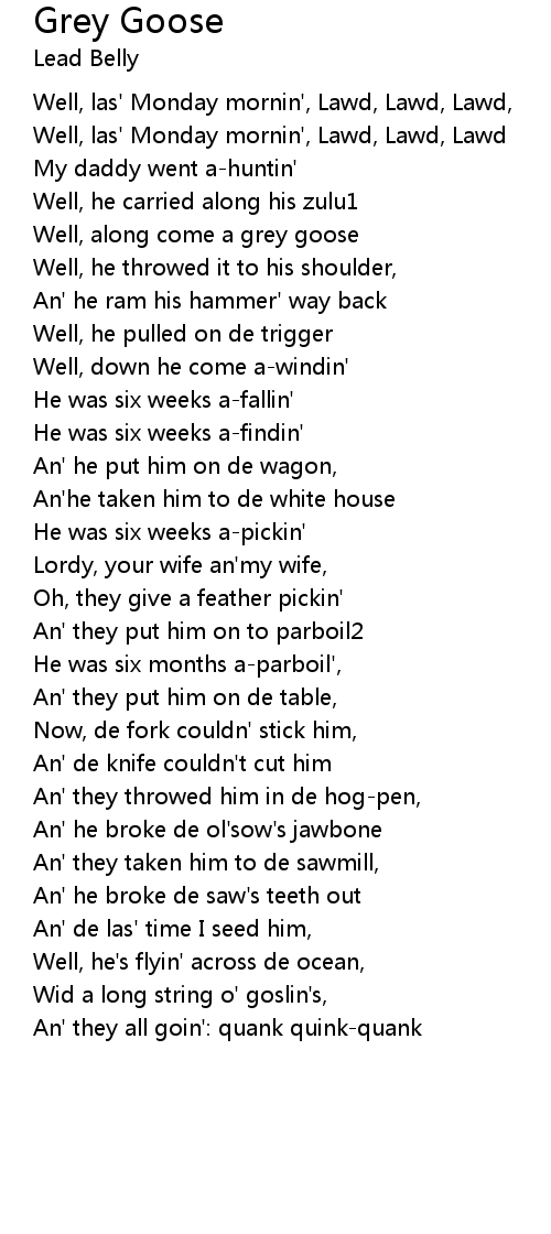 Well, along come a grey goose |