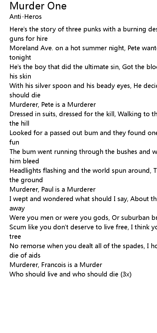 Looked for a passed out bum and they found one, Pete slit his throat just for fun |