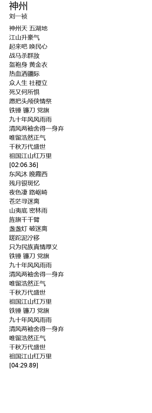 | [00:47.04] | shén zhōu tiān wǔ hú dì |