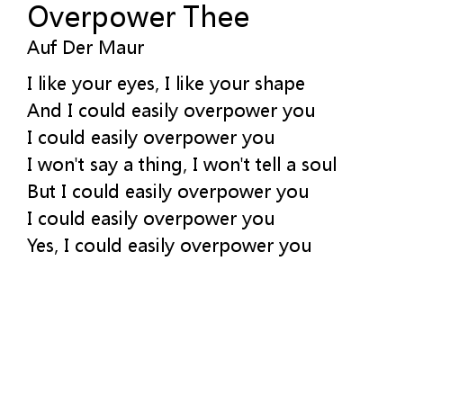 | Song | Overpower Thee |