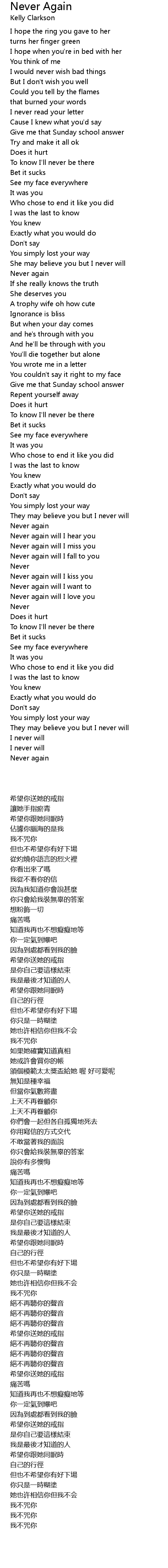Never again will I kiss you |