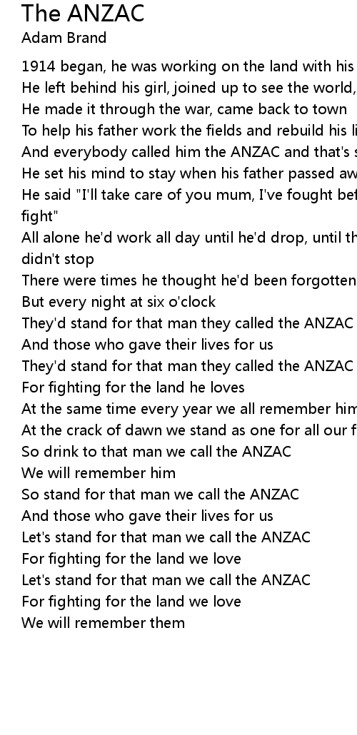 So stand for that man we call the ANZAC |