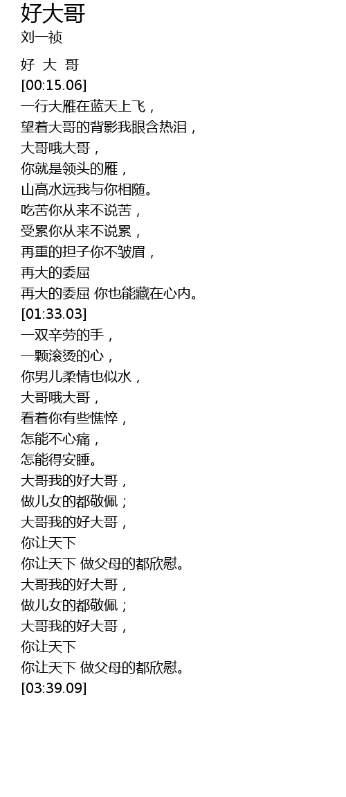 | [02:29.81] | dà gē wǒ de hǎo dà gē, |