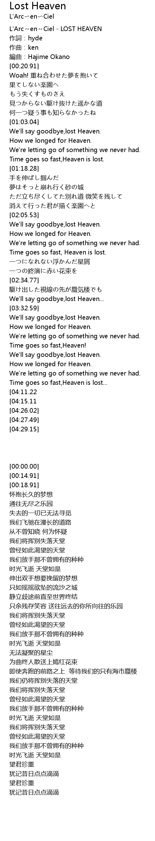 | [00:00.00] | L' Arc en Ciel LOST HEAVEN |