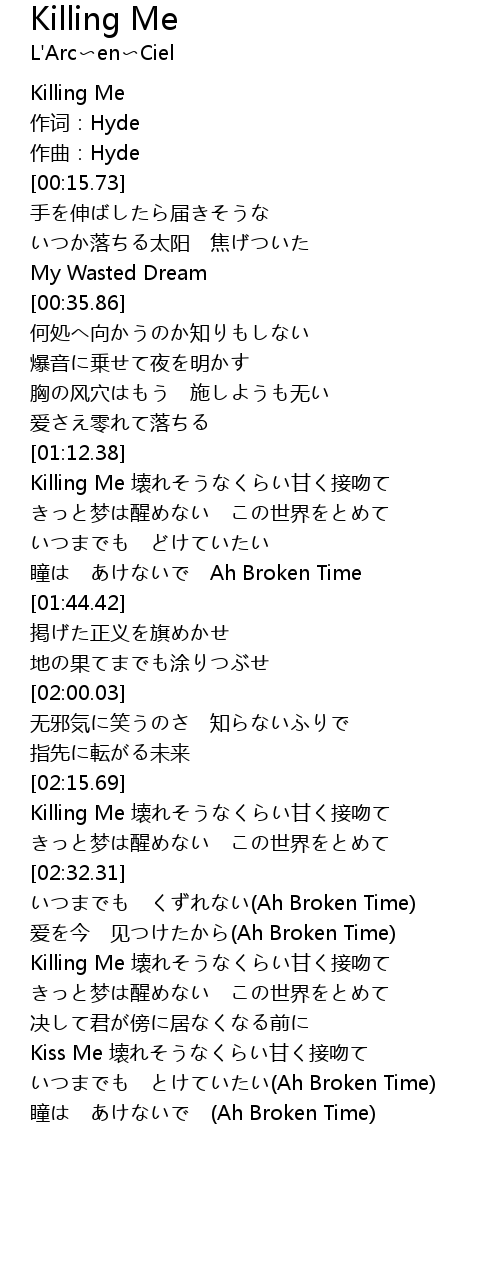 | [00:00.00] | Killing Me |