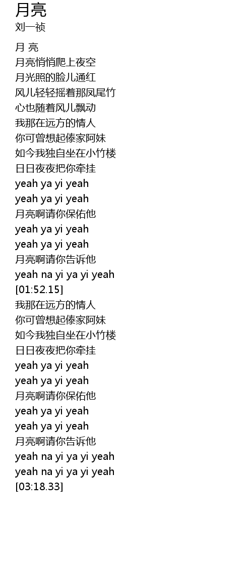 | [02:54.08] | yue liang a qing ni gao su ta |