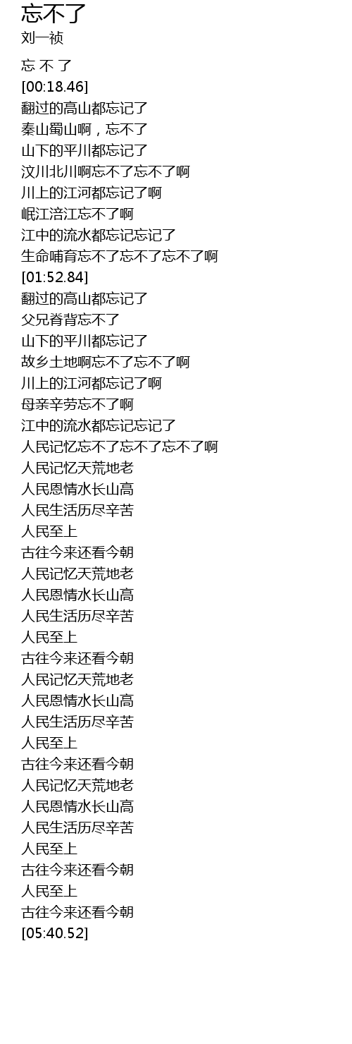 | [03:08.23] | 人民记忆忘不了忘不了忘不了啊 |