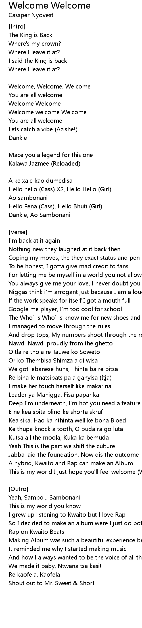| This is my world I just hope you'll feel welcome (Welcome) | |