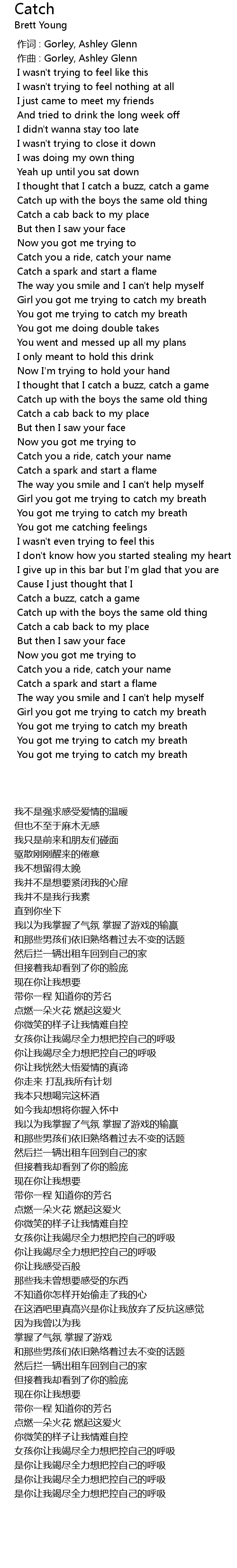 | [02:38.114] | Girl you got me trying to catch my breath |