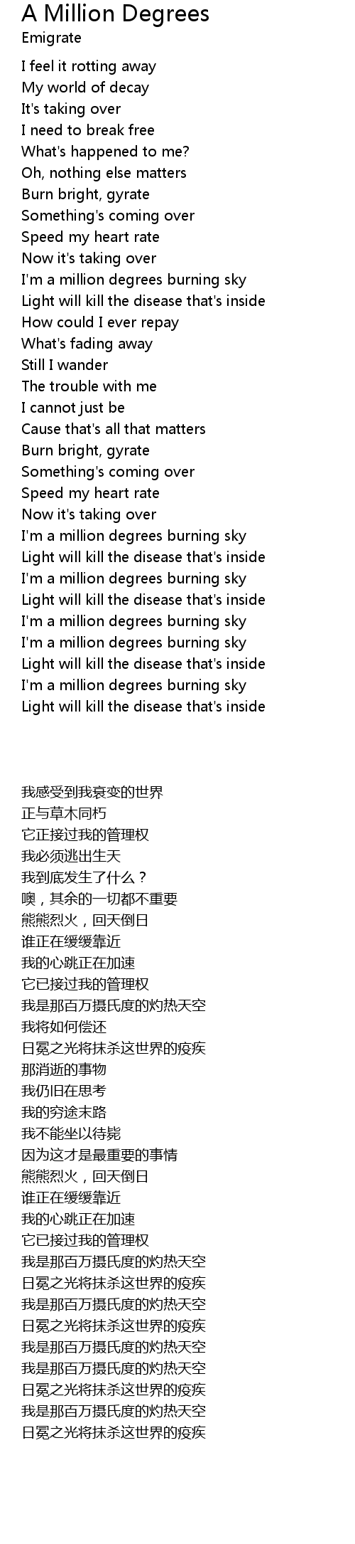 I'm a million degrees burning sky |