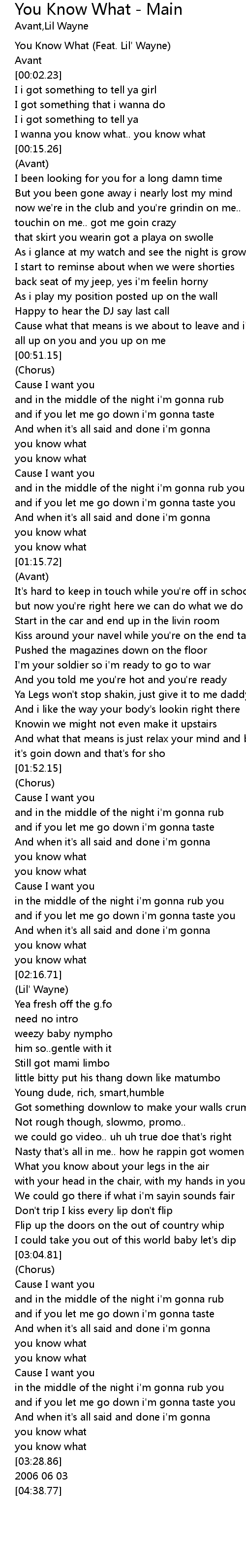| [00:00.95] | You Know What (Feat. Lil' Wayne) |