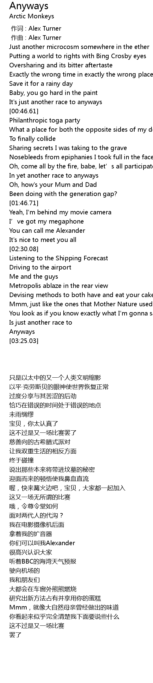 | [00:41.28] | It' s just another race to anyways |