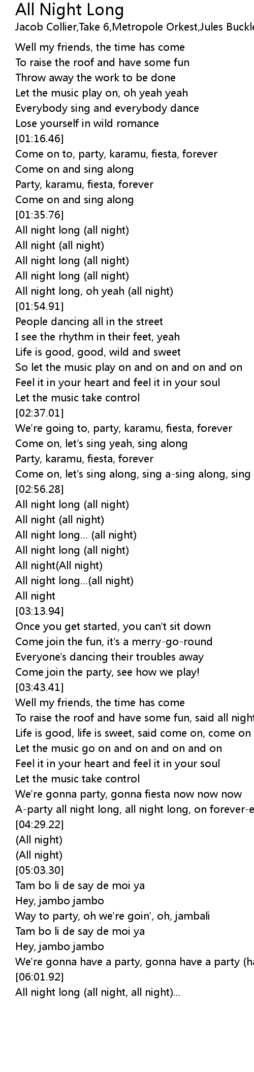 Come on to, party, karamu, fiesta, forever |